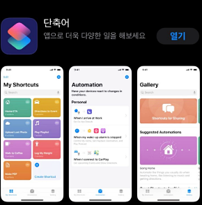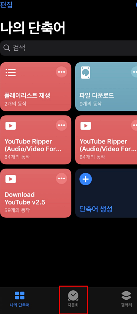 단축어를 다운받고 실행을 시킵니다. 그럼 제일 하단에 자동화라고 보이시나요? 자동화를 클릭 합니다.