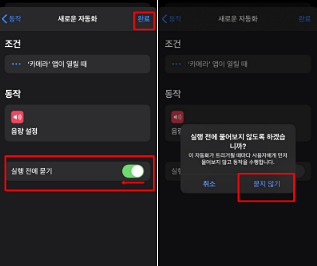 이렇게 음량 설적을 하고 나서, 실전에 묻기가 보이실껍니다. 바로 꺼주고 완료를 합니다. 그러면 아래와 같이 팝업창이 끕니다. 바로 묻지않기를 클릭!