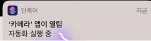 이렇게 하면 아이폰 카메라 무음 시스템이 완료 됩니다. 하지만 저희는 마지막 알림 하나를 더 없애 줘야 하는데요. 이렇게 카메라 어플을 킬 때마다 하단과 같이 알람이 뜹니다. 한번 꺼 보도록 하겠습니다.