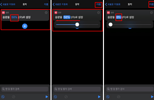 동작추가 클릭 하게 되면 다시 검색을 할 수 있는 것이 보이는데, 음량이라고 치고 음량설정 클릭 그리고 다음을 다시 한번 클릭 합니다.