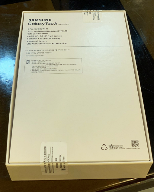 가성비 태블릿 pc 삼성 갤럭시탭 A 8.0 with s pen+ 박스는 정말 심플하게 생겼습니다. 앞면엔 테블릿 사진이 있고, 옆에는 네이밍이 되어 있습니다. 갤럭시 a 시리즈는 갤럭시탭중에서 보급형 라인에 속하는 만큼 정말 가성비가 최고 인데요.