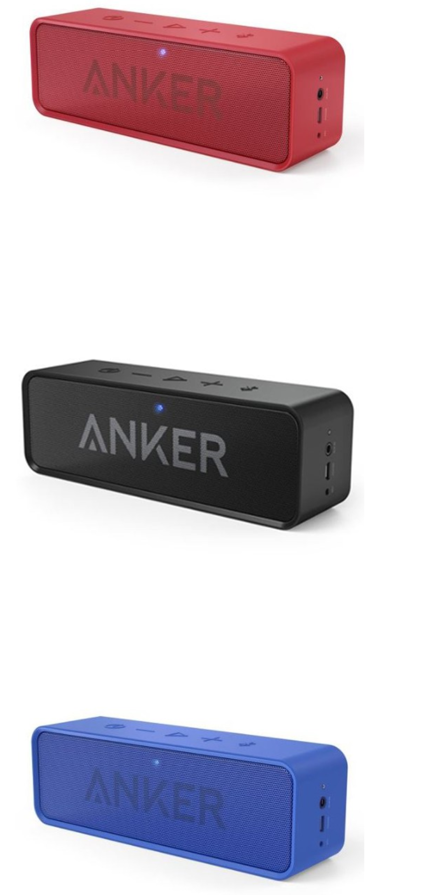 가격도 타사 블루투스 스피커보다 경쟁력이 있기 때문에 인기가 많은 제품 중 하나가 아닐까 싶습니다. 앤커 사운드코어 블루투스 스피커는 총 3가지 색상 빨강, 파랑, 검정으로 구성되어 있습니다.