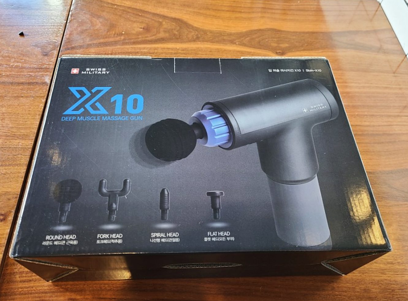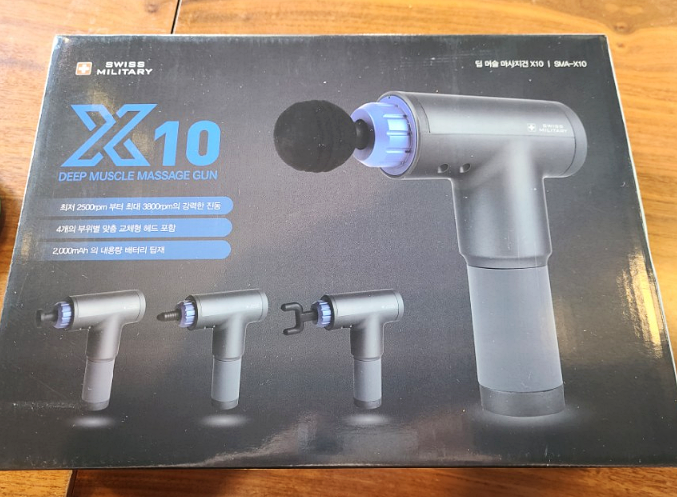 스위스밀리터리 마사지건 x10 엑스텐는 이미 유명세를 타고 있는 마사지건 중 하나 입니다. 가성비 부터 성능까지 최고라고 자부하는 기기인데요. 주변 후기도 정말 좋아서 구매하게 되었습니다.