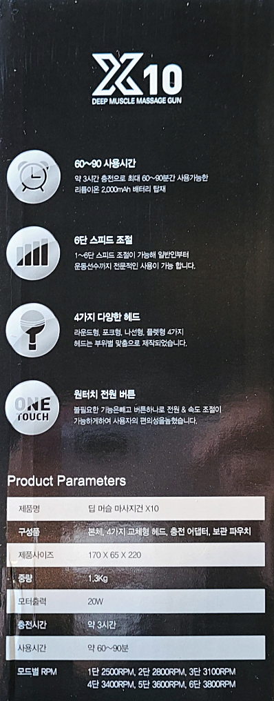 스위스밀리터리 마사지건 x10 엑스텐 성능은 타사에 비해 압도적이었는데요. 60-90 사용시간이 충분히 가능하며, 섬세하게 6단 스피드 조절 또한 가능합니다. 1-6단 스피드 조절로 일반인부터 운동선수까지 사용이 가능 하다고 합니다,