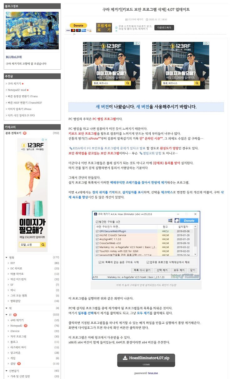 새 버전이 나왔습니다. 새 버전을 사용해주시기 바랍니다. 2018/7/14 - 구라 제거기[키보드 보안 프로그램 삭제] 2.13 업데이트 PC 뱅킹의 주적은 PC 뱅킹 프로그램이다. PC 뱅킹을 하고 나면 컴퓨터가
