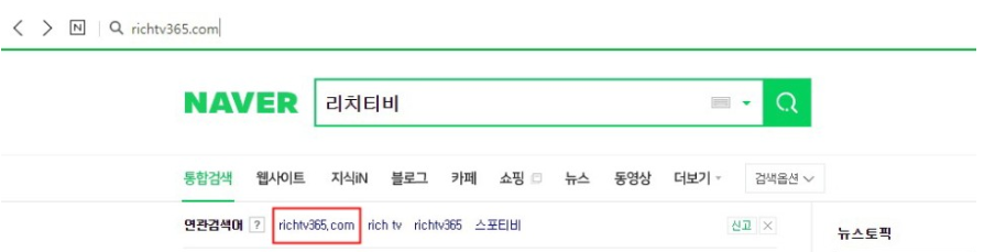 2. 여기서 연관검색어 richtv365.com 이 바로 리티치비 도메인 주소 입니다. 주소창에 이것을 입력하고 엔터를 치면 사이트 주소로 접속하게 됩니다.
