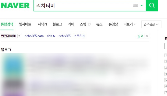 1. 먼저 네이버 검색창에 리치티비를 검색합니다. 사이트 링크는 뜨지 않고 블로그 포스팅만 뜨게 되는데요.
