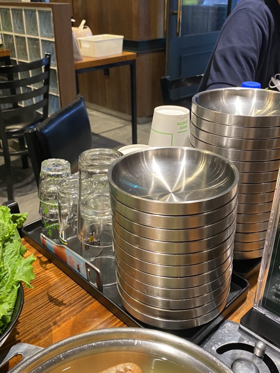 그리고 그릇과, 물컵, 소주잔, 맥주잔 등 먹을 때 필요한 식기들은 직원분을 따로 부르지않아도 되게끔 테이블마다