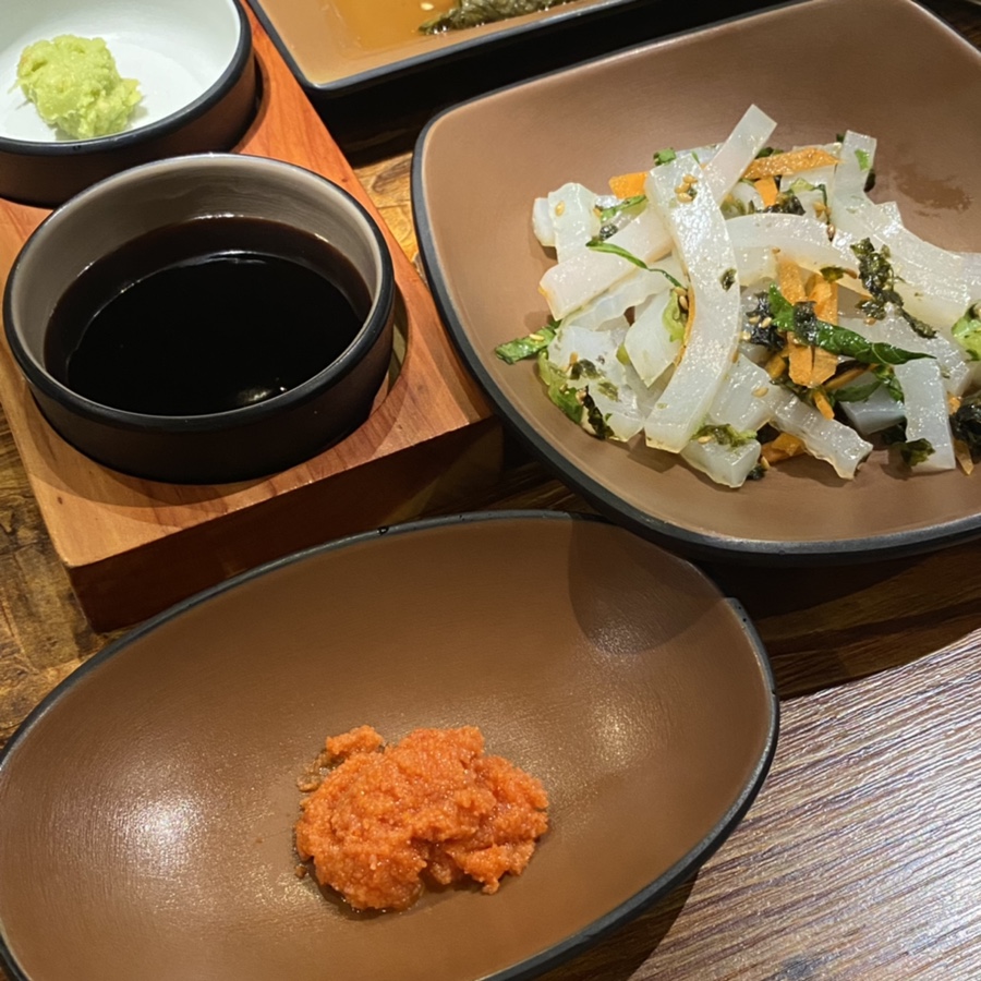 밑반찬으로 청포묵무침과 갖가지 소스, 명란젓도 같이 주시더라구요. 정말 다른 일반적인 기본상차림과는 격이 달랐어요 !!